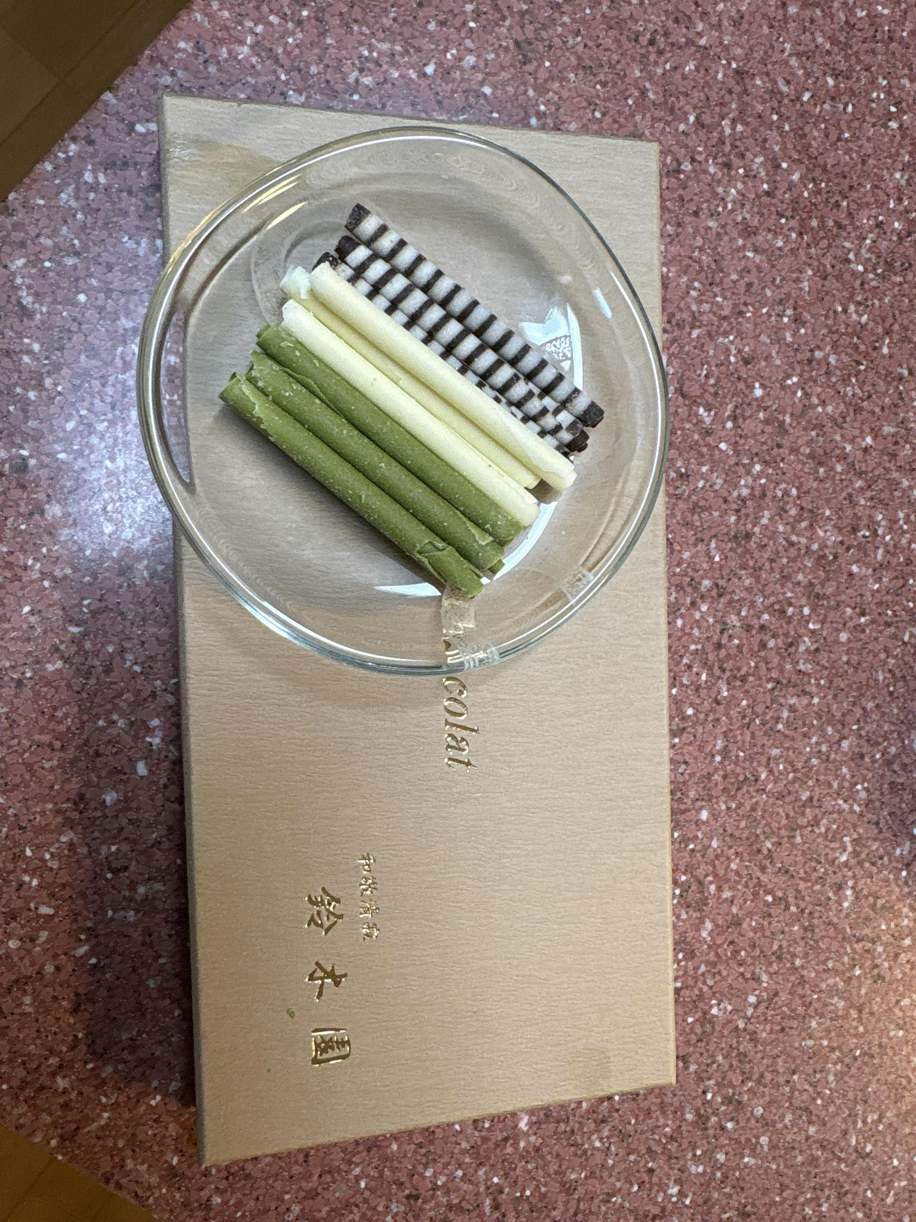 まる 抹茶味はとても風味良くさすがお茶屋さんだと思いました。薄く延ばしたチョコのや巻きがパリパリと歯応えも良かったです。ただ、繊細な薄いチョコなので下の方が割れていたのが残念でした。